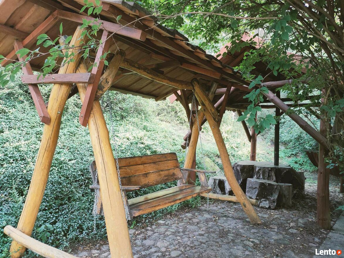 Wszystkie pokoje są wyposażone w niezbędne udogodnienia, takie jak lodówka, kuchenka, czajnik, telewizor, radio, leżak lub krzesło turystyczne, lampka nocna, naczynia, garnki, sztućce i wiele innych. Na terenie obiektu znajduję się dodatkowo sanitariat z łazienkami, toaletami, wc, prysznicami dla osób przebywających pod namiotem.